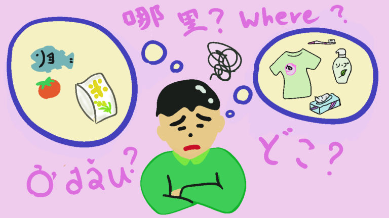 - どんな時 :食料品(しょくりょうひん)や日用品(にちようひん)を買うとき